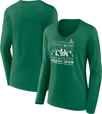 Women's Fanatics Kelly Green Philadelphia Eagles Super Bowl LIX Champions Retro Logo Long Sleeve V-Neck T-Shirt