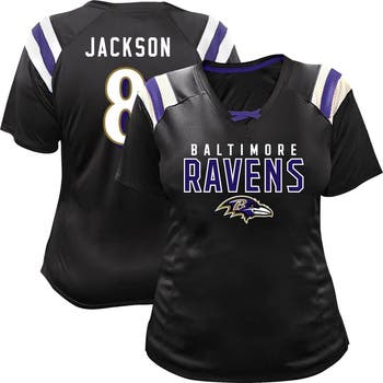 Represent your favorite player in a stylish and comfortable way with this Baltimore Ravens Plus Size Name & Number Raglan Lace V-Neck T-Shirt from Fanatics. The lightweight, breathable fabric will keep you feeling cool and comfortable, whether you're at the stadium or running errands around town. The heat-sealed Lamar Jackson graphics and raglan sleeves ensure you'll be repping your favorite player and team in style.