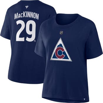 Elevate your look and celebrate your favorite player with this Colorado Avalanche from Fanatics. This premium T-shirt features screen print graphics with Nathan MacKinnon's name and number inspired by official jerseys, so you can showcase your Colorado Avalanche pride. The lightweight feel and relaxed fit offer a comfortable feel that's not too loose or too tight, perfect for game day or any day.