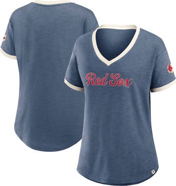 This Cooperstown Collection Vintage Play Slub V-Neck T-Shirt by Fanatics turns a throwback Boston Red Sox look into modern fashion. Its dropped shoulders, rounded hem and rib-knit neckline create a trendy silhouette. The loose, roomy fit and lightweight fabric keep you comfortable all day in this retro Boston Red Sox tee.