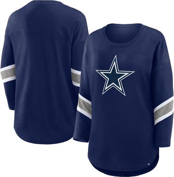 Cheer on the Dallas Cowboys in fashionable and casual apparel with this Redzone 3/4-Sleeve T-Shirt by Fanatics. Its relaxed fit and trendy dropped shoulders provide ample room to move around comfortably. The jersey fabric creates a lightweight feel, while sewn-on stripes accentuate the smooth Dallas Cowboys logo.