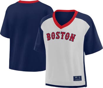 Level up your Boston Red Sox style with this Oversized Race To WinV-Neck T-Shirt by Fanatics. Its dropped shoulders and hem length create a trendy look, while the two-tone design and contrasting trim accentuate the team patch. The oversized fit provides a roomy and relaxed feel, ensuring you stay comfortable in this fashionable Boston Red Sox t-shirt.