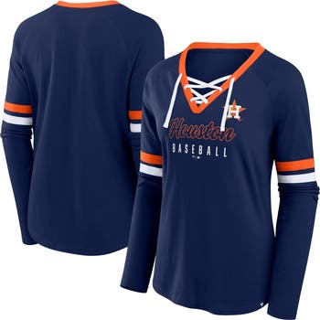 Celebrate your Houston Astros' unwavering spirit with this Fanatics Won & Done Raglan Lace-Up Long Sleeve T-Shirt. With raglan sleeves providing greater freedom of movement, this tee boasts a relaxed fit that's as ready for game day action as it is for casual outings. Plus, the screen-printed team logo and wordmark across the chest leave no doubt about where your loyalty lies when it comes to Major League Baseball's best.