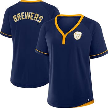 Add a touch of style to your Milwaukee Brewers game day look with this League Diva Star Raglan V-Neck T-Shirt from Fanatics. This stylish tee boasts a flattering v-neck and rounded hem for a look that's both sporty and chic. The Milwaukee Brewers wordmark is heat-sealed across the back, while the team logo adorns the left chest.