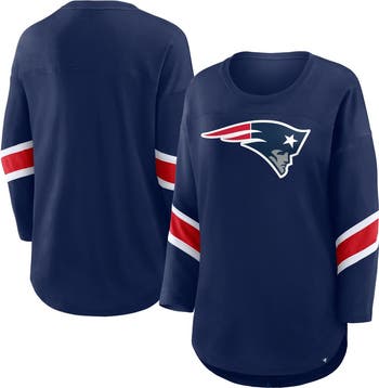 Declare your unwavering allegiance to the New England Patriots with this stylish and comfortable Plus Size Redzone 3/4-Sleeve Scoop Neck T-Shirt from Fanatics. Featuring a relaxed fit and classic hip length, this tee ensures a comfortable and flattering look for any fan. The lightweight jersey fabric and dropped shoulder seams provide ease of movement, perfect for cheering on the team from the stands or relaxing at home. The heat-sealed silicone New England Patriots logo has a smooth, rubberized finish designed to stretch without cracking, ensuring long-lasting quality.