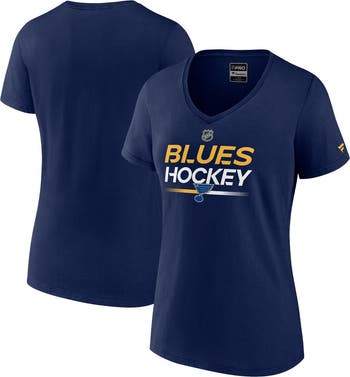 The Women's Fanatics Navy St. Louis Blues Authentic Pro V-Neck T-Shirt is the perfect way to show your unwavering support for the St. Louis Blues. Made from soft and breathable cotton, this T-shirt features screen-printed graphics that proudly display the Blues logo. Whether you're cheering from the stands or simply showing your team spirit, this T-shirt is a must-have for any Blues fan.