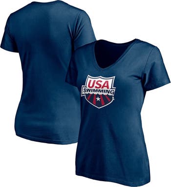 The Women's Fanatics Navy USA Swimming Core Primary Logo V-Neck T-Shirt is the perfect way to show your support for the USA Swimming team. Made from soft cotton, this comfortable T-shirt features screen-printed graphics of the USA Swimming logo, allowing you to proudly represent your favorite team. Whether you're cheering from the stands or simply displaying your support, this T-shirt is a must-have for any USA Swimming fan.