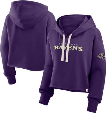 Stay warm and cozy in fashionable Baltimore Ravens outerwear with this Oversized Hometown Heritage Cropped Hoodie by Fanatics. Its dropped shoulders and cropped hem create a trendy look, while heavyweight fleece fabric and an oversized fit keep you comfy. Team patches across the front and on the left sleeve add a timeless touch to this modern Baltimore Ravens hoodie.