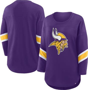 Cheer on the Minnesota Vikings in fashionable and casual apparel with this Redzone 3/4-Sleeve T-Shirt by Fanatics. Its relaxed fit and trendy dropped shoulders provide ample room to move around comfortably. The jersey fabric creates a lightweight feel, while sewn-on stripes accentuate the smooth Minnesota Vikings logo.