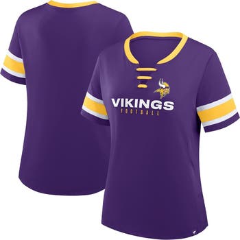 Cheer on the Minnesota Vikings in trendy apparel with this Redzone Draw Play Athena Lace-Up T-Shirt by Fanatics. Stretch jersey fabric provides a lightweight feel, while the classic fit creates a flattering silhouette. Rubberized team details and a faux lace-up neckline add stylish touches to this comfortable Minnesota Vikings tee.