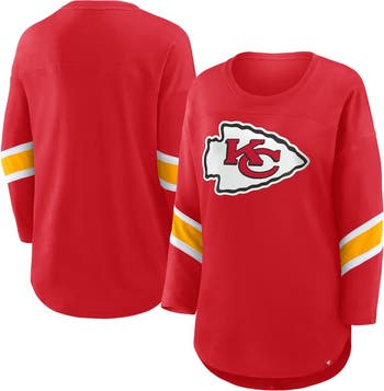 Cheer on the Kansas City Chiefs in fashionable and casual apparel with this Redzone 3/4-Sleeve T-Shirt by Fanatics. Its relaxed fit and trendy dropped shoulders provide ample room to move around comfortably. The jersey fabric creates a lightweight feel, while sewn-on stripes accentuate the smooth Kansas City Chiefs logo.
