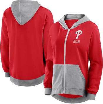 Stay warm while repping the Philadelphia Phillies in this Fanatics Hit It French Terry Full-Zip Hoodie. Its contrasting French terry fabric provides a soft and breathable feel, ensuring maximum comfort throughout the day. The screen-printed team logo and wordmark on the left chest let you show your Philadelphia Phillies pride in style, while the rounded droptail hem provides a flattering fit that's perfect for game day or casual outings.