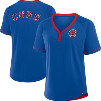 Add a touch of style to your Chicago Cubs game day look with this League Diva Star Raglan V-Neck T-Shirt from Fanatics. This stylish tee boasts a flattering v-neck and rounded hem for a look that's both sporty and chic. The Chicago Cubs wordmark is heat-sealed across the back, while the team logo adorns the left chest.