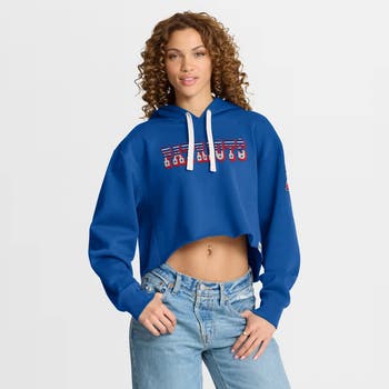 Stay warm and cozy in fashionable New England Patriots outerwear with this Oversized Hometown Heritage Cropped Hoodie by Fanatics. Its dropped shoulders and cropped hem create a trendy look, while heavyweight fleece fabric and an oversized fit keep you comfy. Team patches across the front and on the left sleeve add a timeless touch to this modern New England Patriots hoodie.