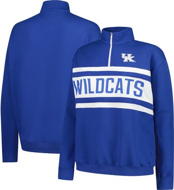 Show off your team spirit with this Kentucky Wildcats Plus Size Quarter-Zip Pullover from Fanatics. The cozy fleece lining and mock neck provide added warmth and a soft feel. Show off your Kentucky Wildcats pride with the heat-sealed team logo on the left chest and script wordmark across the torso!