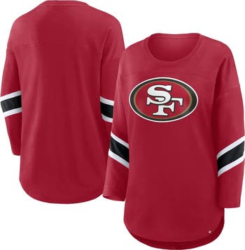 Cheer on the San Francisco 49ers in fashionable and casual apparel with this Redzone 3/4-Sleeve T-Shirt by Fanatics. Its relaxed fit and trendy dropped shoulders provide ample room to move around comfortably. The jersey fabric creates a lightweight feel, while sewn-on stripes accentuate the smooth San Francisco 49ers logo.