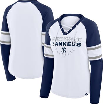 Women's Fanatics White/Navy New York Yankees Blitz Package Raglan Lace-Up V-Neck Long Sleeve T-Shirt