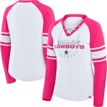 Add a little sparkle to your Dallas Cowboys game day outfit with this Redzone Rhinestone Bling Lace Up Long Sleeve T-shirt from Fanatics. The sewn-on stripes at the sleeves and rounded hem add a touch of sporty flair to this fashionable tee. Plus, the printed team logo and wordmark with rhinestones at the chest show off your Dallas Cowboys pride in a dazzling way.