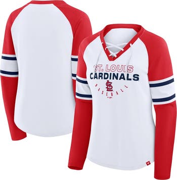 Dress in sporty St. Louis Cardinals apparel with this Blitz Package Raglan Lace-Up V-Neck Long Sleeve T-Shirt by Fanatics. It features raglan sleeves for ease of movement and a stylish lace-up neckline. Lightweight jersey fabric keeps you comfortable all day in this two-tone St. Louis Cardinals tee.