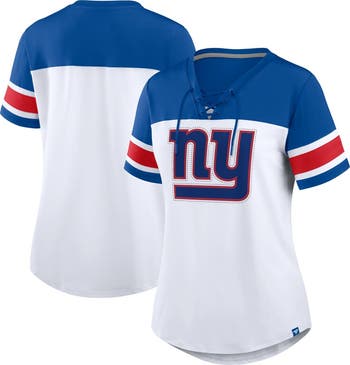 Women's Fanatics White/Royal New York Giants Athena Rhinestone Lace-Up V-Neck T-Shirt