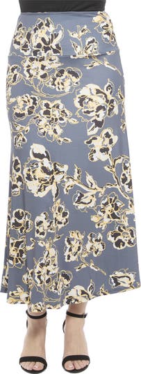 Bring easy style to any day with this grey floral print maxi skirt from 24seven Comfort Apparel. The elastic waistband and flowy A line shape create a relaxed, flattering fit, while the soft stretch fabric keeps you comfortable. Machine washable and tumble dry, it pairs well with fitted tops, denim layers, or bold jewelry for effortless flair.