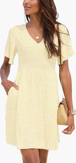 With flutter sleeves and a smocked waist, this butter yellow dress flatters every figure.