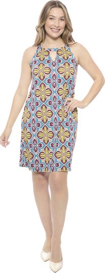 Womens Floral Knee Length Paisley Sleeveless Keyhole Dress