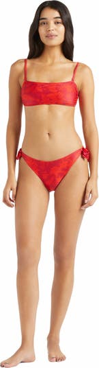 A bralette-style bikini top cut in a flattering shape to enhance the figure. Printed in vibrant, tonal tropical flowers and crafted in stretch fabric with adjustable straps.