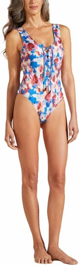 Women's Flowers In The Sky Lace-Up One-Piece Swimsuit