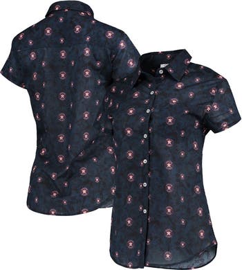 Celebrate your unwavering Houston Astros fandom with the FOCO Navy Houston Astros Floral Button-Up Shirt. This stylish shirt features a full-button front, left chest pocket, and rounded hem, making it both comfortable and versatile. The sublimated graphics showcase your Astros pride, ensuring you'll stand out at the ballpark or anywhere you go.
