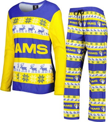 Spread Los Angeles Rams cheer throughout the holiday season in this festive Ugly pajama set from FOCO. It features a winter-themed pattern all over with authentic Los Angeles Rams graphics. An adjustable waistband also provides a personalized fit for the most comfortable feel.