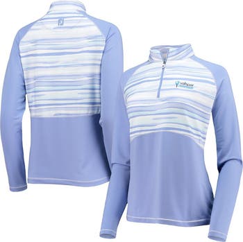 Golf comfortably in various temperatures with this Valspar Championship Watercolor top from FootJoy. Its half-zip closure lets you easily adapt to changing weather conditions, and the antimicrobial finish helps prevent moisture buildup. Additionally, four-way stretch fabric and raglan sleeves allow you to swing through with full range of motion.