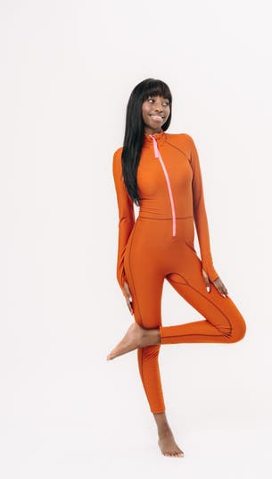 Front-zip full-body one-piece designed for sleek coverage and easy changes, with an adjustable zip that lets you customize coverage—from swim to street. The streamlined fit layers smoothly under cover-ups and transitions easily from water to everyday wear.