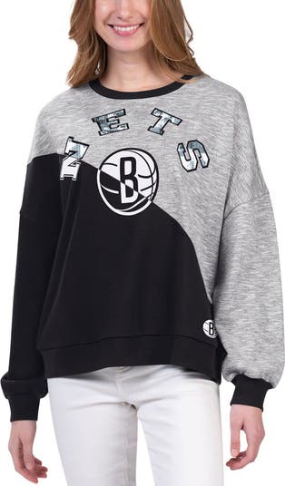 Women's G-III 4Her by Carl Banks Black Brooklyn Nets Benches Split Pullover Sweatshirt