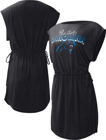 Wear your swimsuit underneath this G.O.A.T. cover-up from G-III 4Her by Carl Banks to show your Carolina Panthers spirit all summer long. It features an adjustable waistband that ties at the sides and a longer, rounded hem for a more comfortable fit. The Carolina Panthers logo is also accentuated by the team name in large, shiny letters.