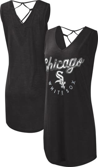 Keep your Chicago White Sox style on point at the beach or pool with this Game Time Beach Cover-Up dress from G-III 4Her by Carl Banks. It features sleek Chicago White Sox graphics printed on the front and an elegant lattice design on the back. Plus, the slub design gives this V-neck dress a translucent look.