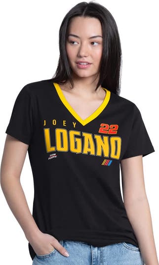 Rep your favorite race car driver in style with the Joey Logano Best Team V-Neck T-Shirt from G-III 4Her by Carl Banks. This piece is crafted from a comfortable cotton/poly blend that provides the perfect balance of breathability and lasting durability. Featuring bold screen print Joey Logano graphics, this v-neck ensures you'll stand out in the grandstands or at your next race-day tailgate. It's a stylish way to showcase your passion for racing and your favorite driver.