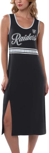 Change up your usual outfit on Las Vegas Raiders game day with this Main Field maxi dress. Its stylish design from G-III 4Her by Carl Banks features contrast-color trim and stripes that accentuate the Las Vegas Raiders graphics printed across the front. A tie closure at the back of the neck lets you adjust the fit for the most comfortable wearing.