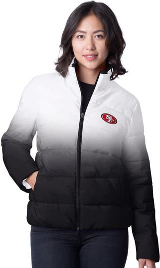 Stay warm while cheering on the San Francisco 49ers with this G-III 4Her by Carl Banks Overtime Ombre Full-Zip Puffer Jacket. With a quilted, ombre design and screen-printed San Francisco 49ers graphics, this jacket lets you rep your team with style. The rib-knit lining inside the neck adds extra warmth, while the droptail hem provides a flattering fit that looks great from the stadium to the streets.