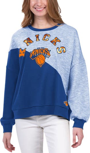 Women's G-III 4Her by Carl Banks Blue New York Knicks Benches Split Pullover Sweatshirt