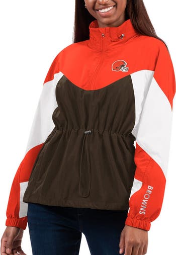 Women's G-III 4Her by Carl Banks Brown/Orange Cleveland Browns Tie Breaker Lightweight Quarter-Zip Jacket