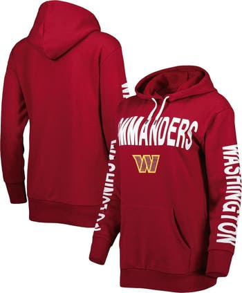 The Women's G-III 4Her by Carl Banks Burgundy Washington Commanders Extra Point Pullover Hoodie is the perfect way to show your support for the Washington Commanders. Made from a soft and comfortable cotton-polyester blend, this midweight hoodie features a fleece lining for added warmth on chilly game days. Screen-printed graphics proudly display your Washington Commanders pride, while the drawstring hood and front pouch pocket provide added functionality. Whether you're cheering from the stands or simply showing your support, this hoodie is the perfect way to represent the Washington Commanders in style.