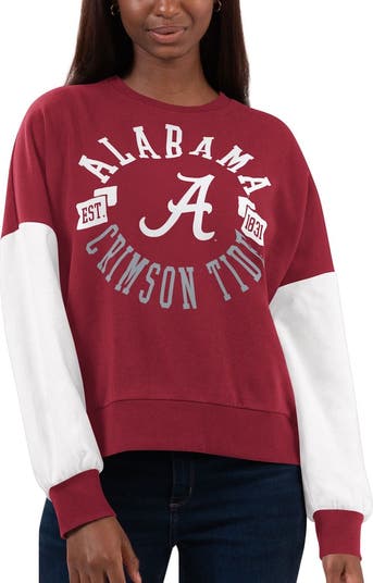 The Women's G-III 4Her by Carl Banks Crimson/White Alabama Crimson Tide Team Pride Colorblock Pullover Sweatshirt is the perfect way to show your support for the Alabama Crimson Tide. This lightweight sweatshirt is made of soft fleece and features screen print graphics that proudly display your team pride. The contrast-color sleeves add a stylish touch, and the pullover design makes it easy to wear. Whether you're cheering on the Crimson Tide at the stadium or just showing your support around town, this sweatshirt is sure to become a favorite.