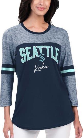 Women's G-III 4Her by Carl Banks Deep Sea Blue Seattle Kraken Play The Game 3/4-Sleeve T-Shirt