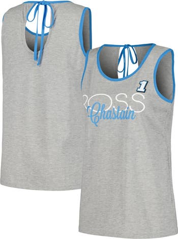 The Women's G-III 4Her by Carl Banks Heather Gray Ross Chastain Fastest Lap Fashion Tank is the perfect way to show your support for Ross Chastain and the NASCAR community. Made from a comfortable cotton and polyester blend, this tank features a scoop neck, screen-printed graphics, and a tie at the back neck. Whether you're cheering on Ross Chastain at the track or just showing your support for NASCAR, this tank is a must-have for any fan.