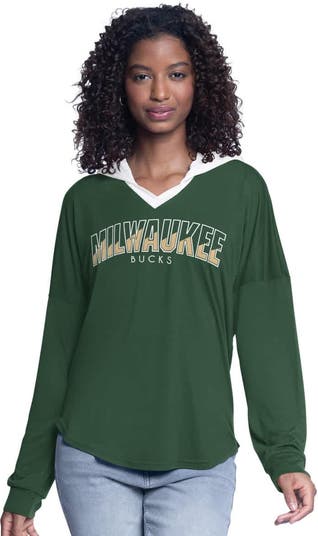 Embrace your Milwaukee Bucks spirit in comfort with this G-III 4Her by Carl Banks Bench Player Oversized Long Sleeve Hooded Top. This oversized hooded top provides a relaxed fit, making it perfect for cheering on your favorite team on game day. A lightweight option, it's crafted from soft cotton and durable polyester and provides a trendy look for any Milwaukee Bucks fan.