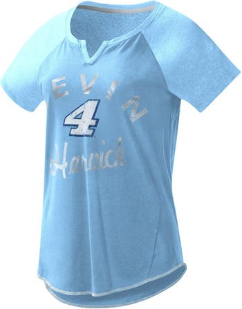 The Women's G-III 4Her by Carl Banks Light Blue Kevin Harvick Grand Slam Tri-Blend Notch V-Neck T-Shirt is the perfect way to show your support for Kevin Harvick and the NASCAR community. Made from a comfortable blend of polyester, cotton, and rayon, this tri-blend t-shirt features a stylish notch v-neck and vibrant graphics that proudly display your Kevin Harvick fandom. Whether you're cheering him on at the track or just showing your support, this t-shirt is a must-have for any Kevin Harvick fan.