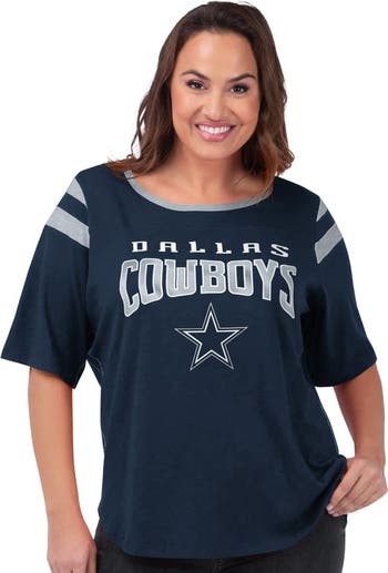 Elevate your casual wear with this Dallas Cowboys Plus Size Linebacker T-Shirt from G-III 4Her by Carl Banks. Its sewn-on contrast-color sleeve stripes add a touch of sporty style, while flatlock stitching ensures durability and a comfortable fit. Plus, the soft, breathable cotton fabric keeps you feeling cool and confident whether you're cheering from the stands or watching the Dallas Cowboys game elsewhere.