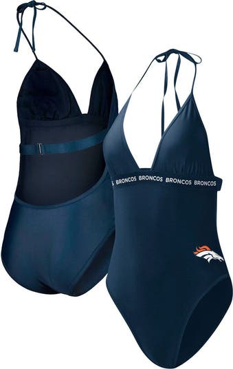 Sit, relax and showcase your die-hard Denver Broncos fandom poolside by wearing this Full Count One-Piece swimsuit from G-III 4Her by Carl Banks. It has built-in padding that provides extra support and comfort throughout every wear. The band that wraps around the front and the iconic Denver Broncos logo featured on this piece are sure to emphasize your unwavering support for your beloved squad.