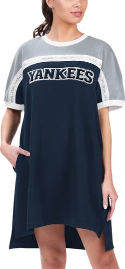Knock comfort and fashion out of the park on New York Yankees game day in this Circus Catch Sneaker dress. Its original design from G-III 4Her by Carl Banks features sparkly details on the team name and stripes. Pockets provide a convenient place to keep essentials easily accessible, and the loose fit gives this New York Yankees dress a relaxed feel for more comfortable wearing inning after inning.
